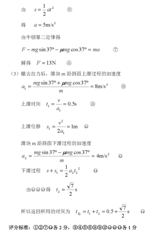 (3)滑块m与滑块M碰撞时间忽略不计,碰后立即撤去拉力F,此时滑块m速度变为4 rn/s,仍沿斜面向上运动,为了防止二次碰撞,迅速接住并移走反弹的滑块M,求滑块m此后在斜面上运动的时间