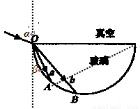 如图所示,不同波长的两单色光a、b沿同一方向从空气射向半圆形玻璃砖,入射点O在直径的边缘,折射光线分别为OA、OB,则( )