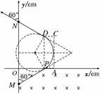 =1×104 C/kg的带正电的粒子(重力不计),速度大小v0=103 m/s,方向垂直于磁场且与x轴正方向成30°角。