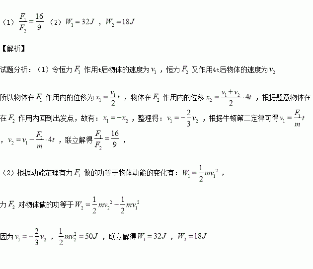 ,又经过时间4t物体回到出发点,此时物体的动能为50J,求: