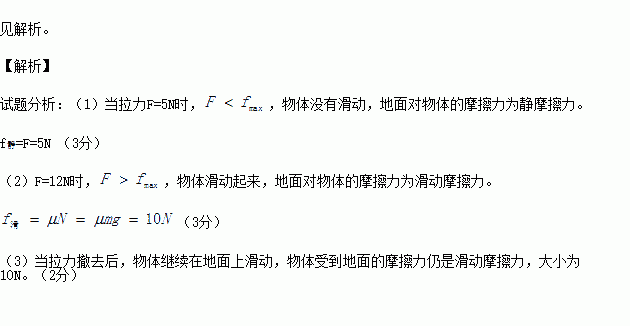 (1)当拉力大小为5N时,地面对物体的摩擦力是多大?