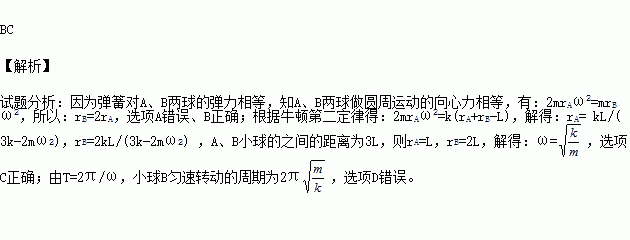 ÈçͼËùʾ£¬Ë®Æ½×ªÌ¨ÈÆÊúÖ±ÖáÔÈËÙת¶¯£¬´©ÔÚˮƽ¹â»¬Ö±¸ËÉϵÄСÇòAºÍBÓÉÇáÖʵ¯»ÉÏàÁ¬²¢Ïà¶ÔÖ±¸Ë¾²Ö¹£®ÒÑÖªA¡¢BСÇòµÄÖÊÁ¿·Ö±ðΪ2mºÍm£¬ËüÃÇÖ®¼äµÄ¾àÀëΪ3L£¬µ¯»ÉµÄ¾¢¶ÈϵÊýΪk¡¢×ÔÈ»³¤¶ÈΪL£¬ÏÂÁзÖÎöÕýÈ·µÄÊÇ£¨ £©
