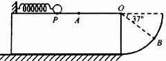 如图所示,一个半径为R的圆周的轨道,O点为圆心,B为轨道上的一点,OB与水平方向的夹角为37°.轨道的左侧与一固定光滑平台相连,在平台上一轻质弹簧左端与竖直挡板相连,弹簧原长时右端在A点.现用一质量为m的小球(与弹簧不连接)压缩弹簧至P点后释放.已知重力加速度为g,不计空气阻力.