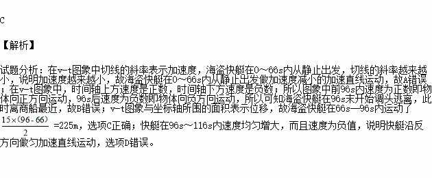 C.海盗快艇在66s--96s内运动了225m