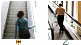 如图甲为一女士站立在台阶式自动扶梯上正在匀速上楼,如图乙为一男士站立在乘履带式自动人行道上正在匀速上楼.下列关于两人受到的力做功判断正确的是( )