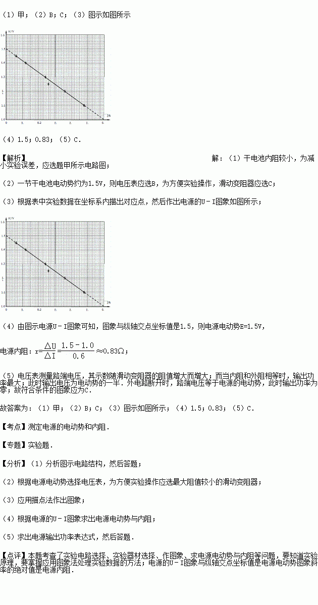 (5)实验中,随着滑动变阻器滑片的移动,电压表的示数U以及干电池的输出功率P都会发生变化.图3的各示意图中正确反映P﹣U关系的是 .