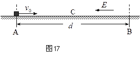 如图17所示,绝缘水平面上的AB区域宽度为d,带正电、电量为q,质量为m的小滑块以大小为v0的初速度从A点进入AB区域,当滑块运动至区域的中点C时,速度大小为