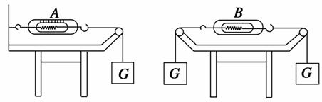 如图所示,弹簧秤和细线的重力及一切摩擦不计,物重G=1 N,则弹簧秤A和B的示数分别为( )
