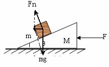 的楔形木块静置于粗糙水平桌面上。另一质量为m的木块,置于楔形木块的斜面上,木块与斜面的接触是光滑的。为了保持木块相对于斜面静止,需要用大小为