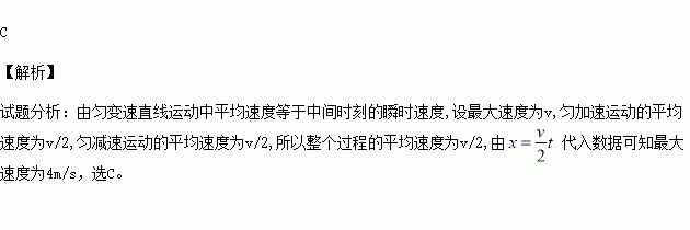 一辆汽车由静止开始做匀加速直线运动运动一段时间后,司机发现一乘客未上车,便紧急刹车做匀减速运动。从启动到停止一共经历10s,前进了20m,在此过程中,汽车的最大速度为( )