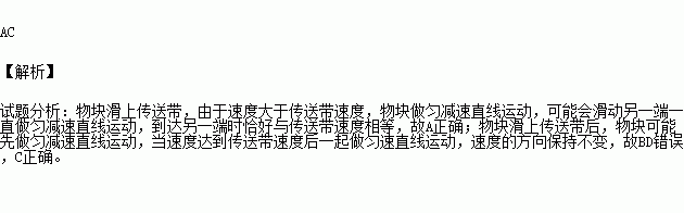 如图所示,绷紧的水平传送带始终以恒定速度v1运行,初速度大小为v2(v2> v1)的小物块从与传送带等高的光滑水平地面上滑上传送带,从小物块滑上传送带开始计时,物块在传送带上运动的v-t图象可能的是
