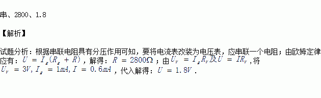 的电阻,改装后的电压表测量电压时,指针指在表盘上原来0.6mA处,则被测电压的大小是________V.