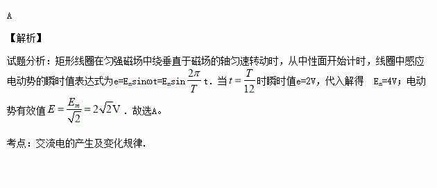 T时,线圈中感应电动势的瞬时值为2 V,则此交流电的有效值为( )