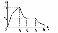 2012年10月15日,奥地利极限运动员鲍姆加特纳从距地面高度约3.9万米的高空跳下,并成功着陆。假设他沿竖直方向下落,其v-t图象如图,则下列说法中正确的是( )