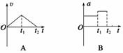 伽利略曾利用对接斜面研究“力与运动”的关系。如图,固定在水平地面上的倾角均为θ的两斜面,以光滑小圆弧相连接。左侧斜面顶端的小球与两斜面的动摩擦因数均为μ。小球从左侧顶端滑到最低点的时间为t1,滑到右侧最高点的时间为t2。规定斜面连接处为参考平面,则小球在这个运动过程中速度的大小v、加速度的大小a、动能Ek及机械能E随时间t变化的关系图线正确的是
