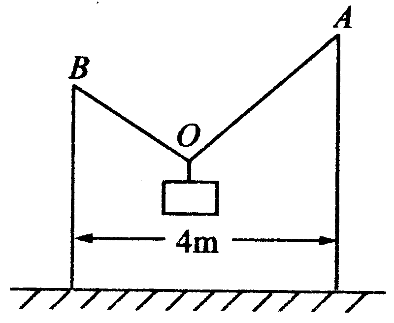 如图所示,长为5m的细绳的两端分别系于竖立在地面上相距为4m的两杆的顶端A、B.绳上挂一个光滑的轻质挂钩,其下挂着一个重为12N的物体.平衡时,绳中的张力F=_____N.
