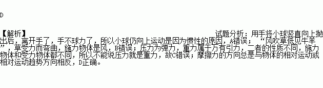 B.“风吹草低见牛羊”,草受力而弯曲,但没见施力物体,所以没有施力物体也能使其它物体受力