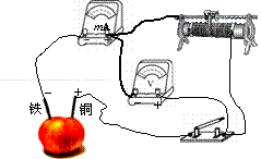 某研究性学习小组用较粗的铜丝和铁丝相隔较近距离插入苹果中,制成了一个苹果电池,现在用如图甲所示器材来测定苹果电池的电动势和内阻。设计好合适的电路后,调节滑动变阻器,改变电源两端的电压U和流过电源的电流I,记录多组U、I的数据,填入事先设置的表格中。然后逐渐增大铜丝和铁丝插入的深度,重复上述步骤进行实验。按照插入深度逐渐增加的顺序,利用相应的实验数据,在U-I坐标系中绘制图象,如图乙中的a、b、c所示。