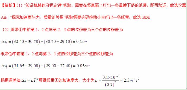 (2)乙同学在实验室选齐所需器材后,经正确操作获得如图2所示的两条纸带①和②。纸带__________的加速度大(填①或者②),其加速度大小为____________.