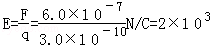 试题分析:电场强度的方向与正电荷在该点所受的电场力方向相同,大小由场强的定义式