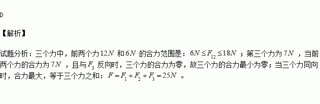 有三个力,一个力是12 N,一个力是6 N,一个力是7 N,则关于这三个力的合力,下列说法不正确的是( )