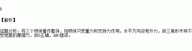 在粗糙水平面上放着一个三角形木块abc,在它的两个粗糙斜面上分别放有质量为m1和m2的两个物体, m1>m2,如图所示,若三角形木块和两物体都是静止的.则粗糙水平面对三角形木块