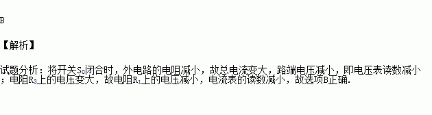 在如图所示的电路中,E为电源电动势,r为电源内阻,R1、R2和R3均为定值电阻,在开关S闭合,开关S0断开状态下时,两个电表A和V的示数分别为I和U。现将开关S0闭合,则两个电表示数的变化情况是( )