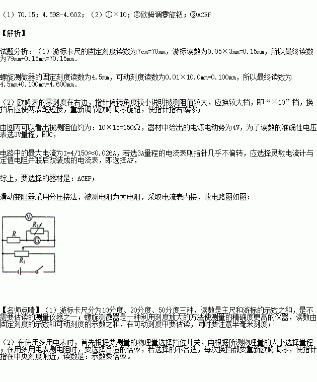 (1)用游标卡尺和螺旋测微器分别测量其长度和直径,如图所示,则其长度L=______mm,直径d=______mm.