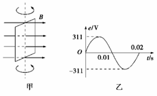 在匀强磁场中,一矩形金属线框绕与磁感线垂直的转轴匀速转动,如图甲所示,产生的交变电动势的图象如图乙所示,则( )