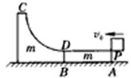 在光滑水平面上静置有质量均为m的木板AB和滑块CD,木板AB上表面粗糙,动摩擦因数为μ,滑块CD上表面为光滑的1/4圆弧,它们紧靠在一起,如图1-93所示.一可视为质点的物块P质量也为m,它从木板AB右端以初速v0滑入,过B点时速度为v0/2,后又滑上滑块,最终恰好滑到最高点C处,求:(1)物块滑到B处时,木板的速度vAB;(2)木板的长度L;(3)物块滑到C处时滑块CD的动能.