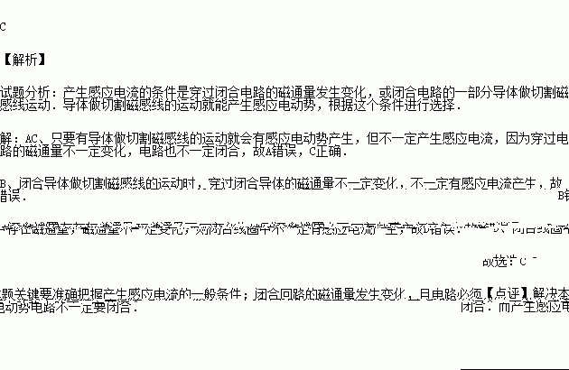 B.只要有闭合导体做切割磁感线的运动就会有感应电流产生
