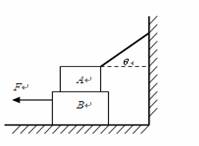 在水平面上放一木块B,重力为G2 = 100N。再在木块上放一物块A,重力为G1 = 550N,设A和B,B和地面之间的动摩擦因数μ均为0.5,先用绳子将A与墙固定拉紧,如图所示,已知θ = 37º,然后在木块B上施加一个水平力F,若想将B从A下抽出,F最少应为多大?