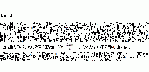所示.其中高度从h1下降到h2,图象为直线,其余部分为曲线,h3对应图象的最高点,轻弹簧劲度系数为k,小物体质量为m,重力加速度为