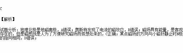 D.某点磁场的方向与小磁针静止时S极的指向相同