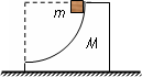 如图所示,弧面体M置于光滑水平地面上,其光滑的四分之一圆弧面上有一小物块m从顶端由静止下滑。在小物块下滑过程中,小物块m和弧面体M的总动量 (填“守恒”或“不守恒”),机械能 (填“守恒”或“不守恒”)。