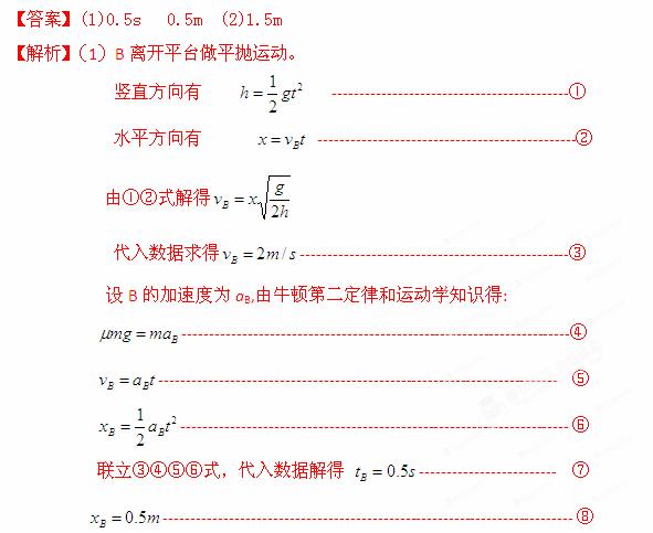 平台)后,将A取走。B离开平台后的落地点与平台右边缘的水平距离x=1.2m。(取g=10m/s2)求: