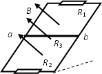 如图所示,倾斜的平行导轨处在匀强磁场中,导轨上、下两边的电阻分别为R1=3Ω和R2=6Ω,金属棒ab的电阻R3=4Ω,其余电阻不计。则金属棒ab沿着粗糙的导轨加速下滑的过程中