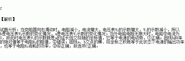③图线a、b交点的横、纵坐标之积等于此状态下电源的输出功率