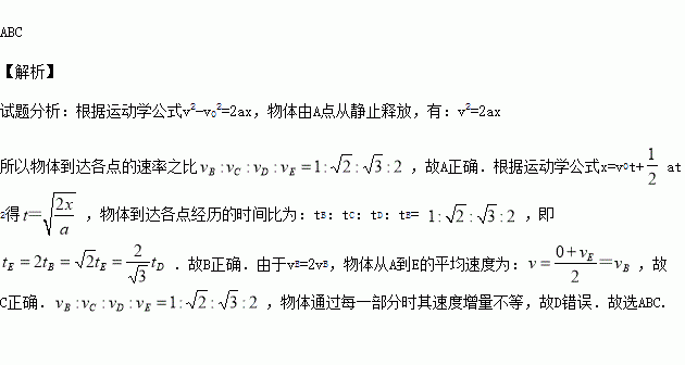 如图所示,光滑斜面AE被分成四个相等的部分,一物体由A点从静止释放,下列结论中正确的是