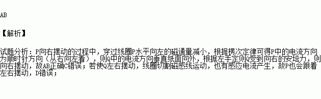 C£®PÏòÓÒ°Ú¶¯µÄ¹ý³ÌÖУ¬Q»áÏò×ó°Ú¶¯
