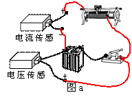 在测定电源电动势(其值不超过5V)和内阻的实验中,用电压传感器测量端电压、电流传感器测量总电流,如图a所示.
