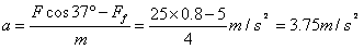 如图所示,质量为m=4kg的物体与水平地面间的动摩擦因数μ=0.2,现用F=25N与水平方向成θ=37°的力拉物体,使物体由静止开始做匀加速运动: