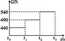 某人在地面上用弹簧秤称得其体重为490 N,他将弹簧秤移至电梯内称其体重,t0至t3时间段内,弹簧秤的示数如图所示,电梯运行的v