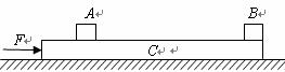 如图所示,光滑水平面上静止放置质量M = 2kg,长L = 0.84m的长木板C,离板左端S = 0.12m处静止放置质量mA =1kg的小物块A,A与C间的动摩擦因数μ = 0.4;在板右端静止放置质量mB = 1kg的小物块B,B与C间的摩擦忽略不计.设最大静摩擦力等于滑动摩擦力,A、B均可视为质点,g = 10m/s2.现在木板上加一水平向右的力F,问: