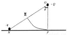 在光滑绝缘水平面的P点正上方O点固定一个电荷量为+Q的点电荷,在水平面上的N点,由静止释放质量为m,电荷量为-q的负检验电荷,该检验电荷经过P点时速度为v,图中θ=60?,规定电场中P点的电势为零。则在+Q形成的电场中( )
