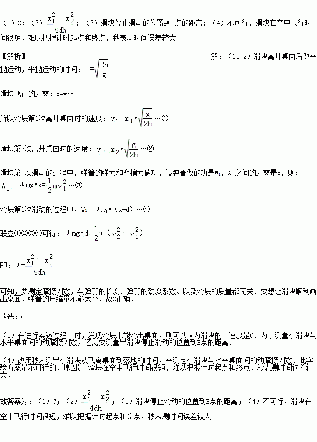 £¨4£©Ä³Í¬Ñ§ÈÏΪ£¬²»²âÁ¿×ÀÃæ¸ß¶È£¬¸ÄÓÃÃë±í²â³öС»¬¿é´Ó·ÉÀë×ÀÃæµ½Â䵨µÄʱ¼ä£¬Ò²¿É²â³öС»¬¿éÓëˮƽ×ÀÃæ¼äµÄ¶¯Ä¦²ÁÒòÊý£®´ËʵÑé·½°¸ £¨Ñ¡Ìî¡°¿ÉÐС±»ò¡°²»¿ÉÐС±£©£¬ÀíÓÉÊÇ £®