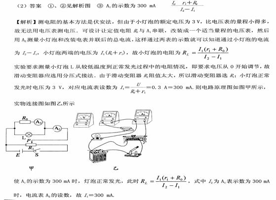 ③ 闭合开关S,移动滑片P,使 时,可知灯泡正常发光,此时灯泡的电阻为 (用测量的物理量表示)。