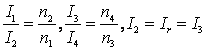 。电流之间的关系是: