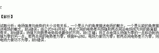 D.将正点电荷从场强为零的一点移动到场强为零的另一点,电场力做功为零