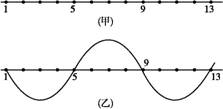 ,Öʵã1ÊDz¨Ô´,Ëü¿ªÊ¼Õñ¶¯Ê±ËÙ¶È·½ÏòÊúÖ±ÏòÉÏ,Õñ¶¯ÏòÓÒ´«²¥,¾¹ýÒ»¶Îʱ¼ät,ǰ13¸öÖʵãµÚÒ»´ÎÐγÉÈçͼ(ÒÒ)ËùʾµÄ²¨ÐÎ,Ôò¸Ã²¨µÄ²¨³¤ºÍÖÜÆÚ·Ö±ðÊÇ(¡¡¡¡)